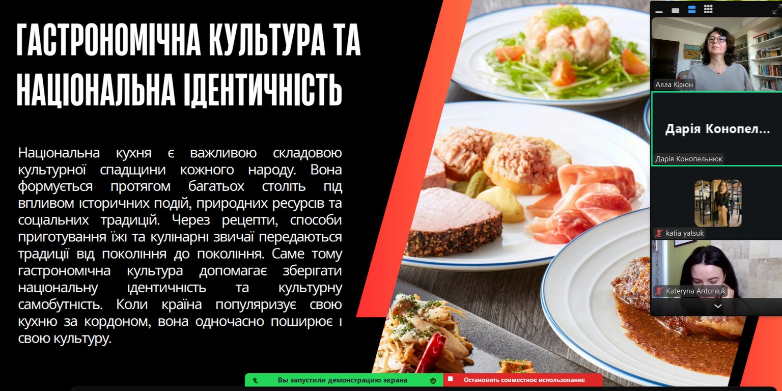- Конопельнюк Дарія, здобувач вищої освіти ОС «магістр» ОП «Готельно-ресторанна справа» групи ГРС-11д(м) з доповіддю на тему «Національний бренд через гастрономію»;