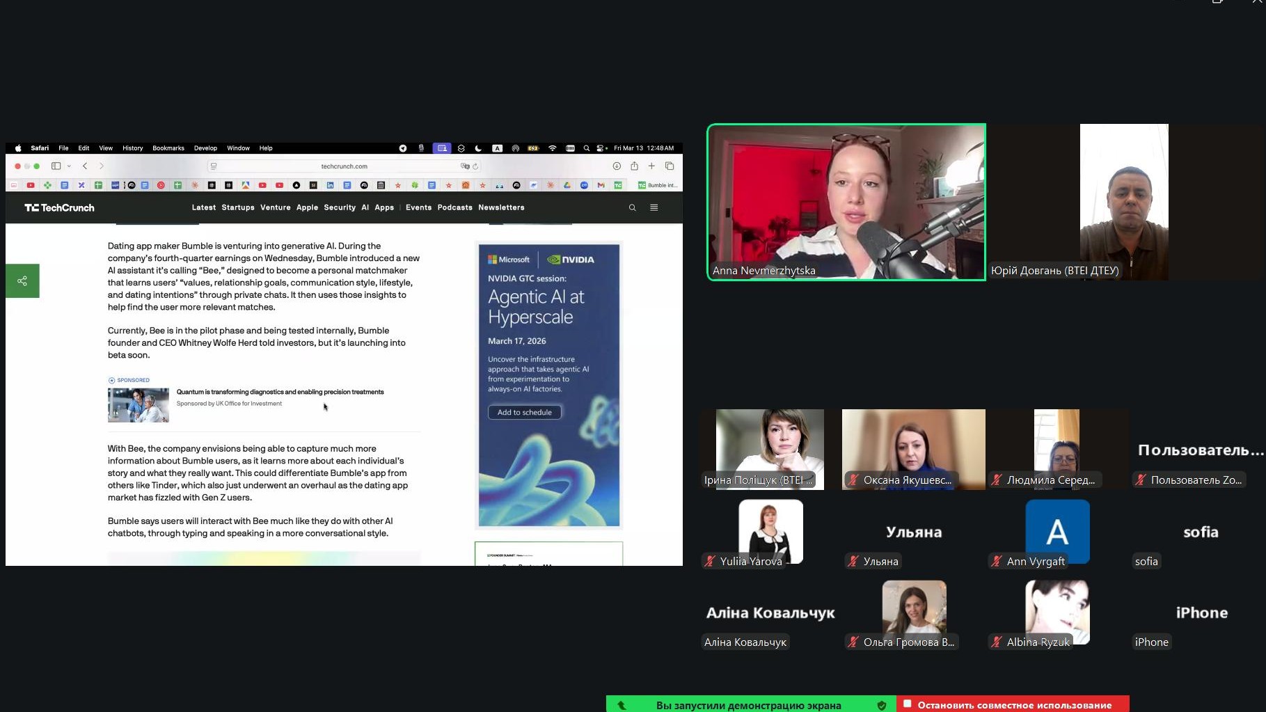 13 березня 2026 року відбулася гостьова лекція для здобувачів ОП «Маркетинг», «Логістика», «Реклама і зв’язки з громадськістю» на тему «GO-TO-MARKET стратегія технологічних продуктів: досвід США». Спікеркою заходу стала Анна Невмержицька – засновниця компанії Social Producer, експертка з виходу на міжнародні ринки (Каліфорнія, США).