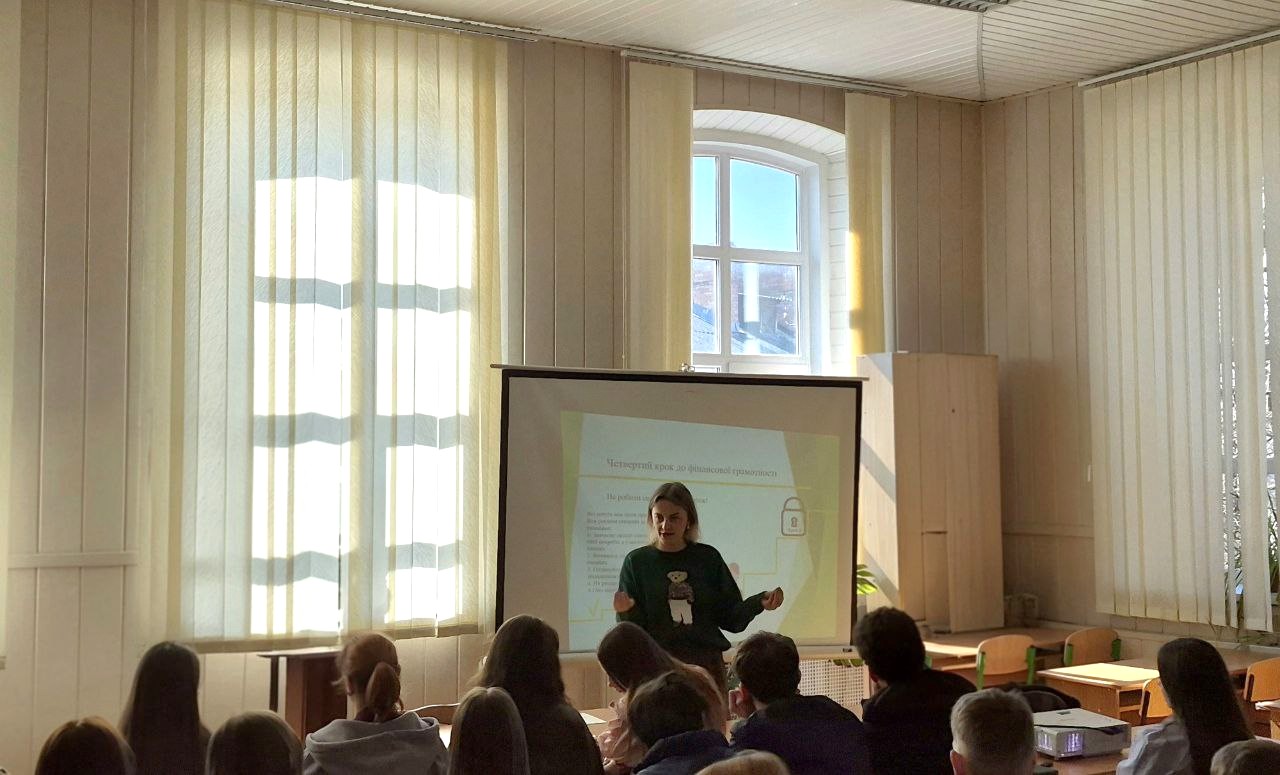 Крім того, для учнів було проведено майстер-клас «Фінансова грамотність», який провела доцент кафедри фінансів Ліна Маршук. Учасники заходу мали можливість дізнатися про основи фінансової культури, правила відповідального ставлення до коштів, планування особистого бюджету та важливість фінансової обізнаності в сучасному світі.