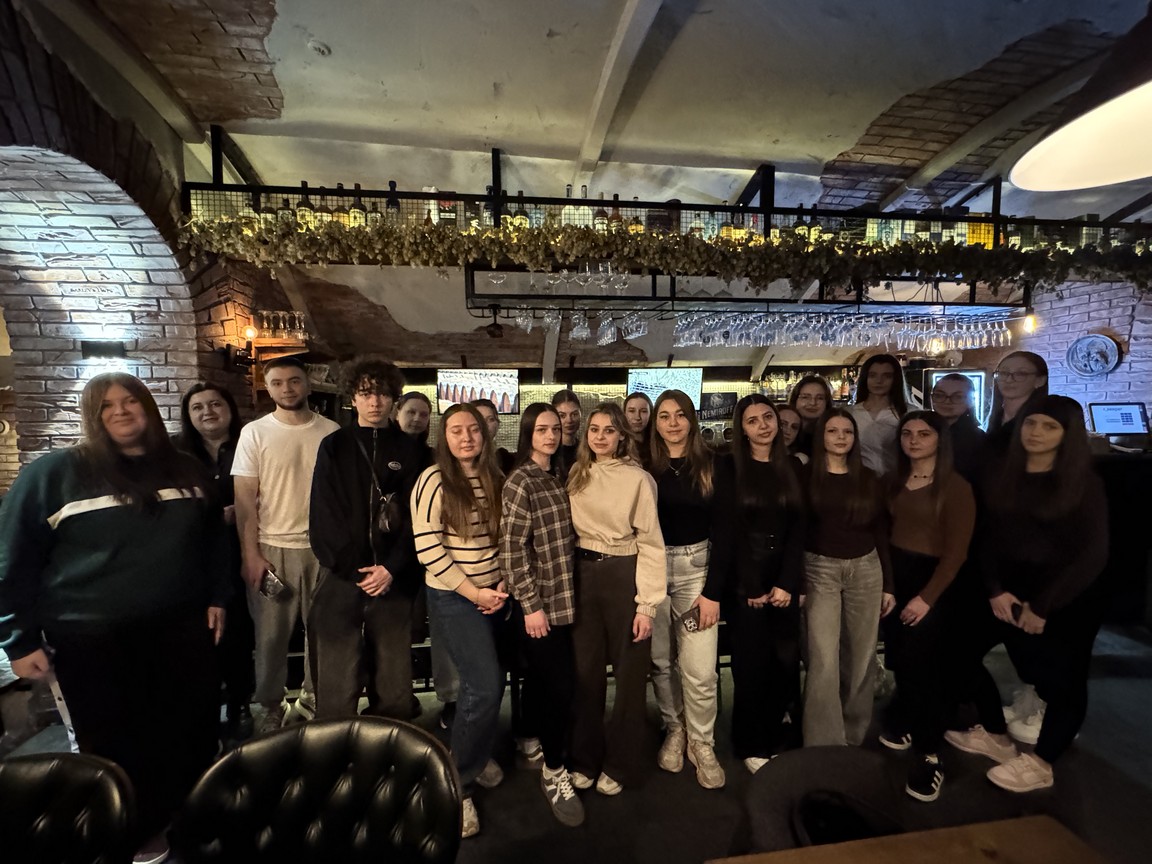 На занятті майбутні фахівці ознайомилися з унікальною концепцією ресторану, що поєднує автентичну атмосферу з сучасними стандартами сервісу, детально вивчили особливості організації технологічних процесів, формування меню на основі локальних гастрономічних традицій та специфіку управління клієнтським досвідом у тематичному закладі.