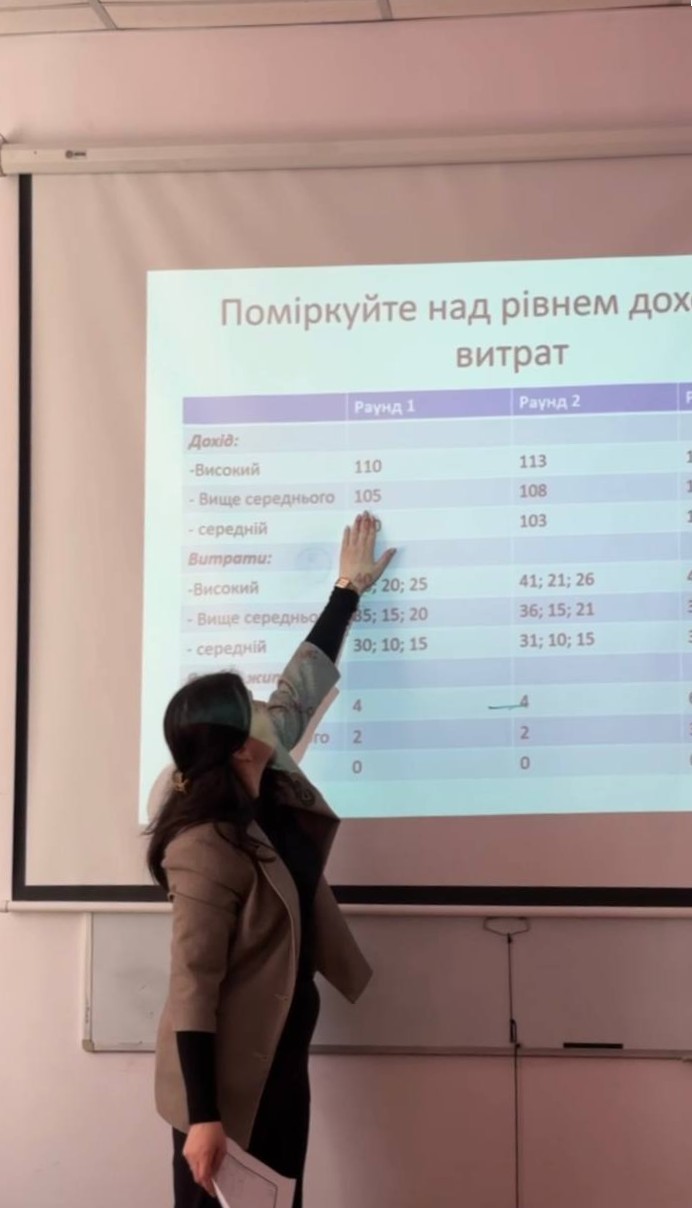 Особливу увагу було приділено розвитку практичних навичок фінансового планування, визначенню коротко- та довгострокових фінансових цілей, а також пошуку оптимальних стратегій їх досягнення. Учасники працювали в командах, аналізували різні фінансові сценарії та вчилися приймати зважені рішення в умовах обмежених ресурсів і ризиків.