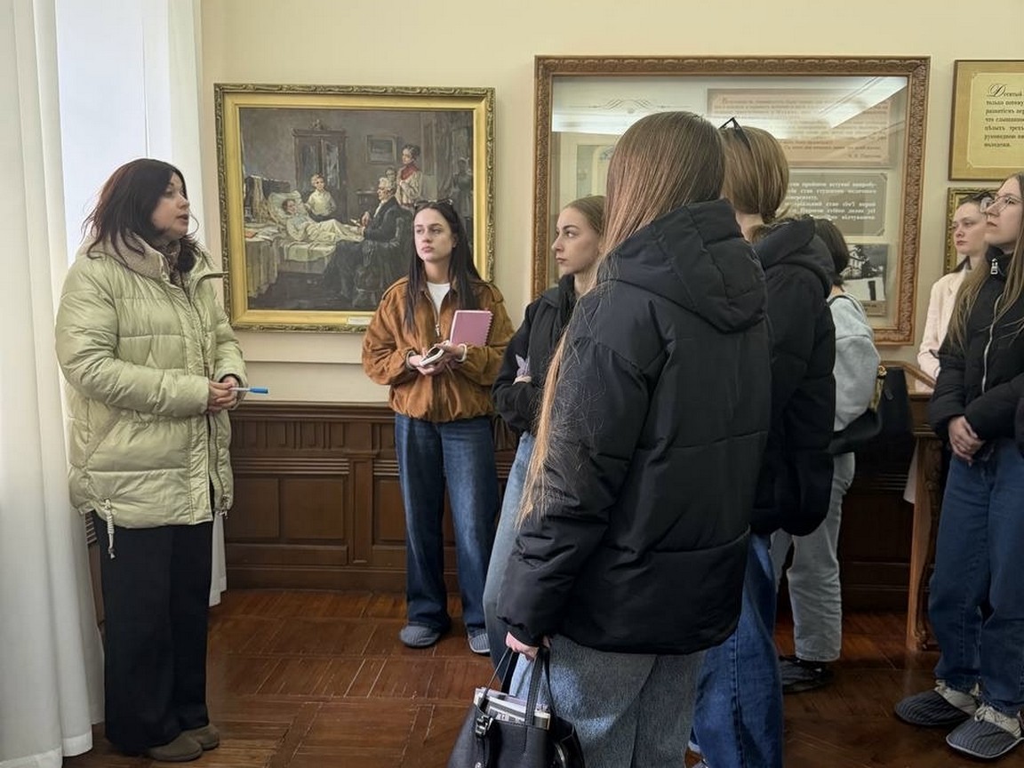 Учасники екскурсії мали можливість ознайомитися з експозицією у будинку-музеї, де в режимі реального часу спостерігали за відтвореним інтер'єром кабінету, операційної та житлових кімнат. Студенти побачили: особисті речі та рукописи вченого; колекції медичних інструментів того часу; аптеку, де відтворено процес виготовлення ліків за рецептами Пирогова.