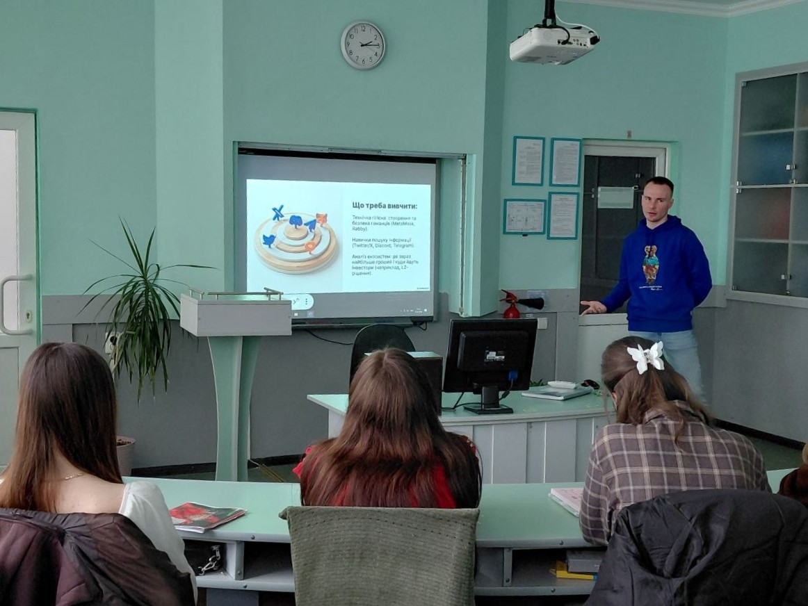 Захід був спрямований на ознайомлення студентів із базовими принципами функціонування та основними напрямками роботи на криптовалютному ринку, що сьогодні є невід’ємною складовою фінансової грамотності сучасного фахівця.