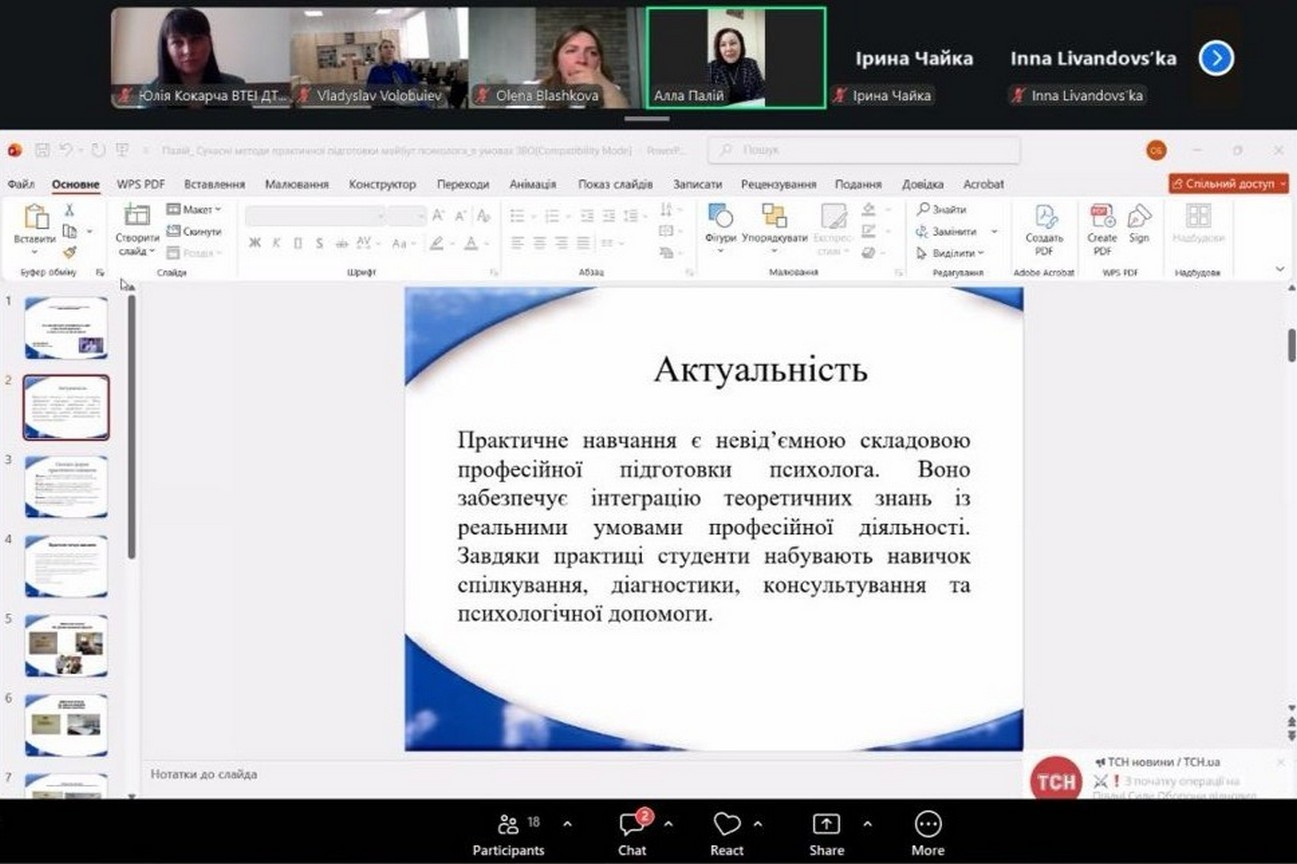 У межах заходу гарант освітньо-професійної програми «Психологія» другого (магістерського) рівня вищої освіти, доктор філософії в галузі психології (PhD), доцент кафедри психології – Чайка Ірина, яка виступила з доповіддю, щодо важливості системного залучення фахівців-практиків і роботодавців до освітнього процесу. Підкреслила доцільність впровадження спільних ініціатив (гостьові лекції, майстер-класи, супервізії), розширення баз практик, розвитку дуальної освіти як ключових умов підвищення якості освітньо-професійних програм і формування готовності випускників до ефективної професійної діяльності.
