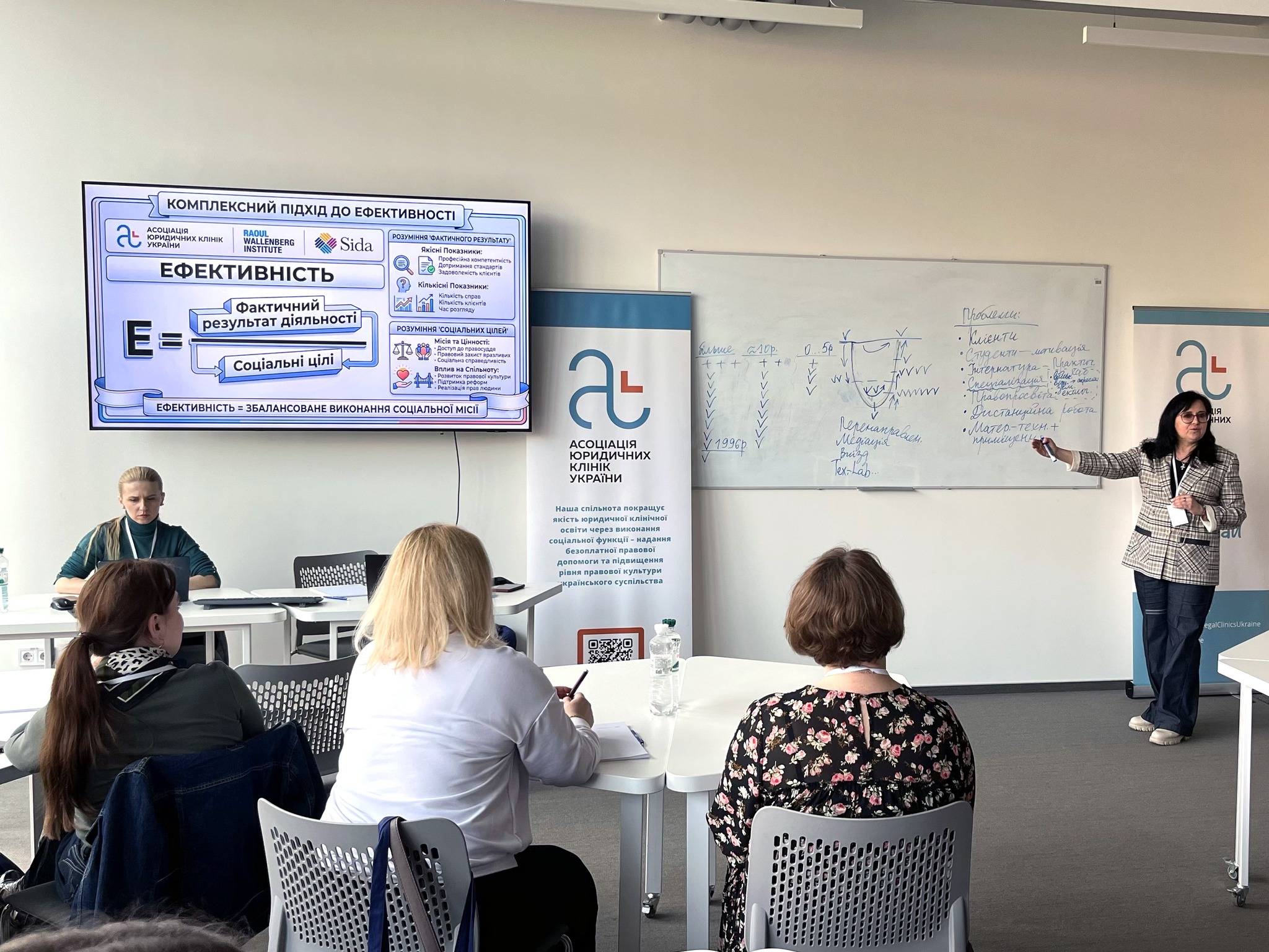 Стратегічне управління та місія: під керівництвом членкині Правління АЮКУ Юлії Матвєєвої учасники дискутували про роль клініки як «практичного хабу» та «інтернатури» для студентів, де соціальна функція допомоги громаді поєднується з якісною професійною підготовкою майбутніх правників;