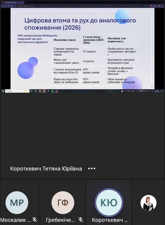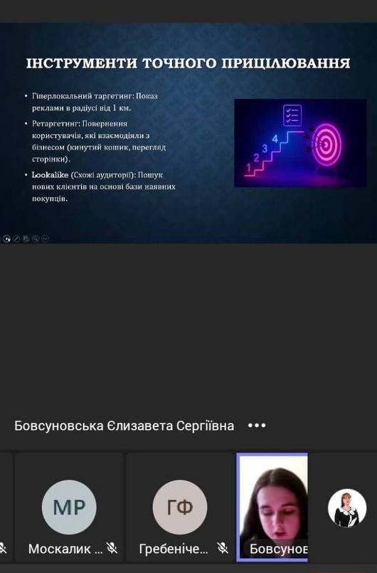 У рамках заходу було здійснено огляд сучасного стану соціальних мереж як важливого елементу цифрового середовища. Проаналізовано їхню роль як ефективного інструменту продажів, зокрема підходи до залучення аудиторії та побудови комунікації з клієнтами. Окреслено ключові тенденції digital-маркетингу, серед яких персоналізація контенту, розвиток відеоформатів та зростання впливу інфлюенсерів. Також визначено основні аспекти впливу соціальних мереж на поведінку споживачів і процес прийняття ними рішень.