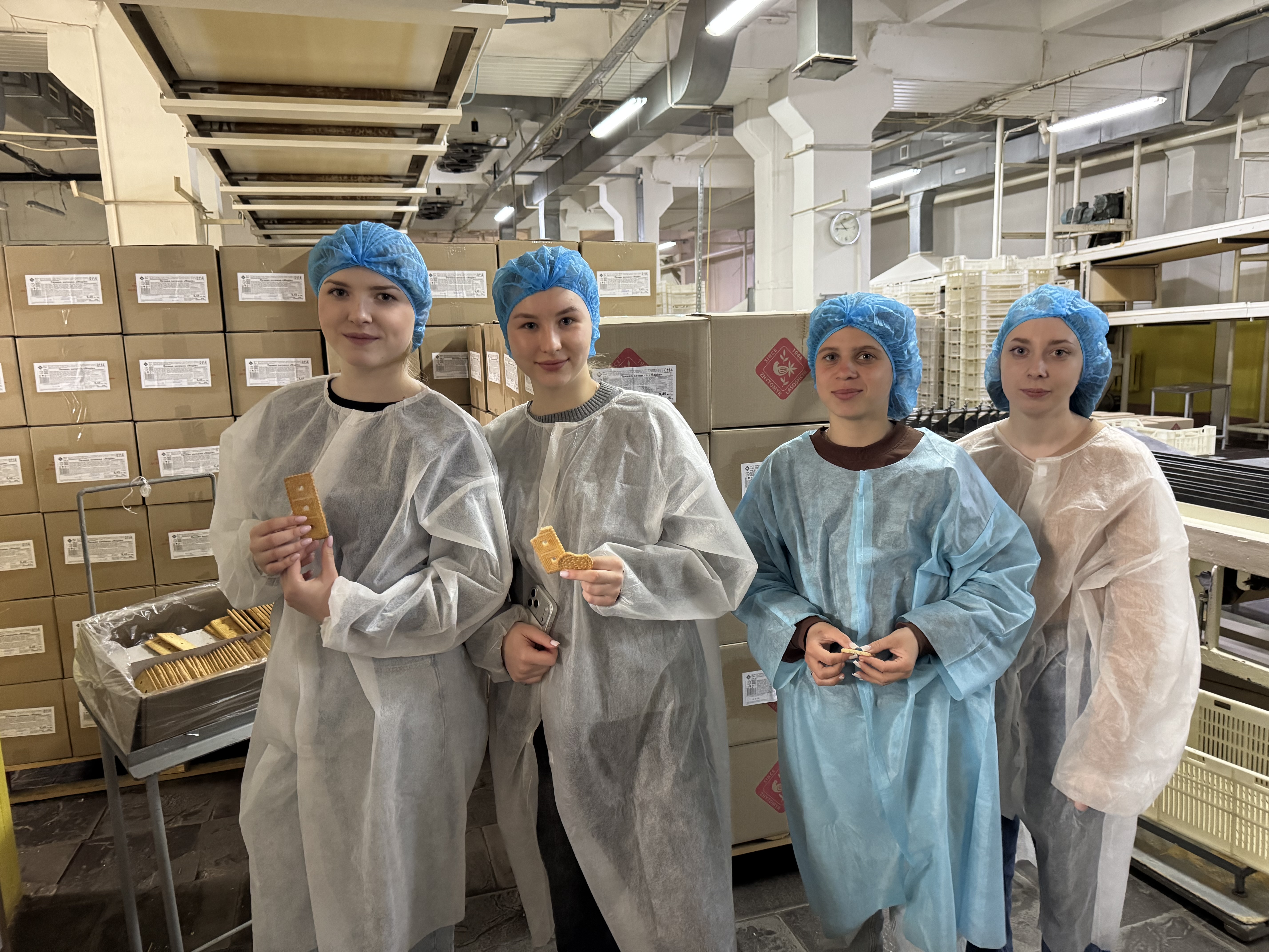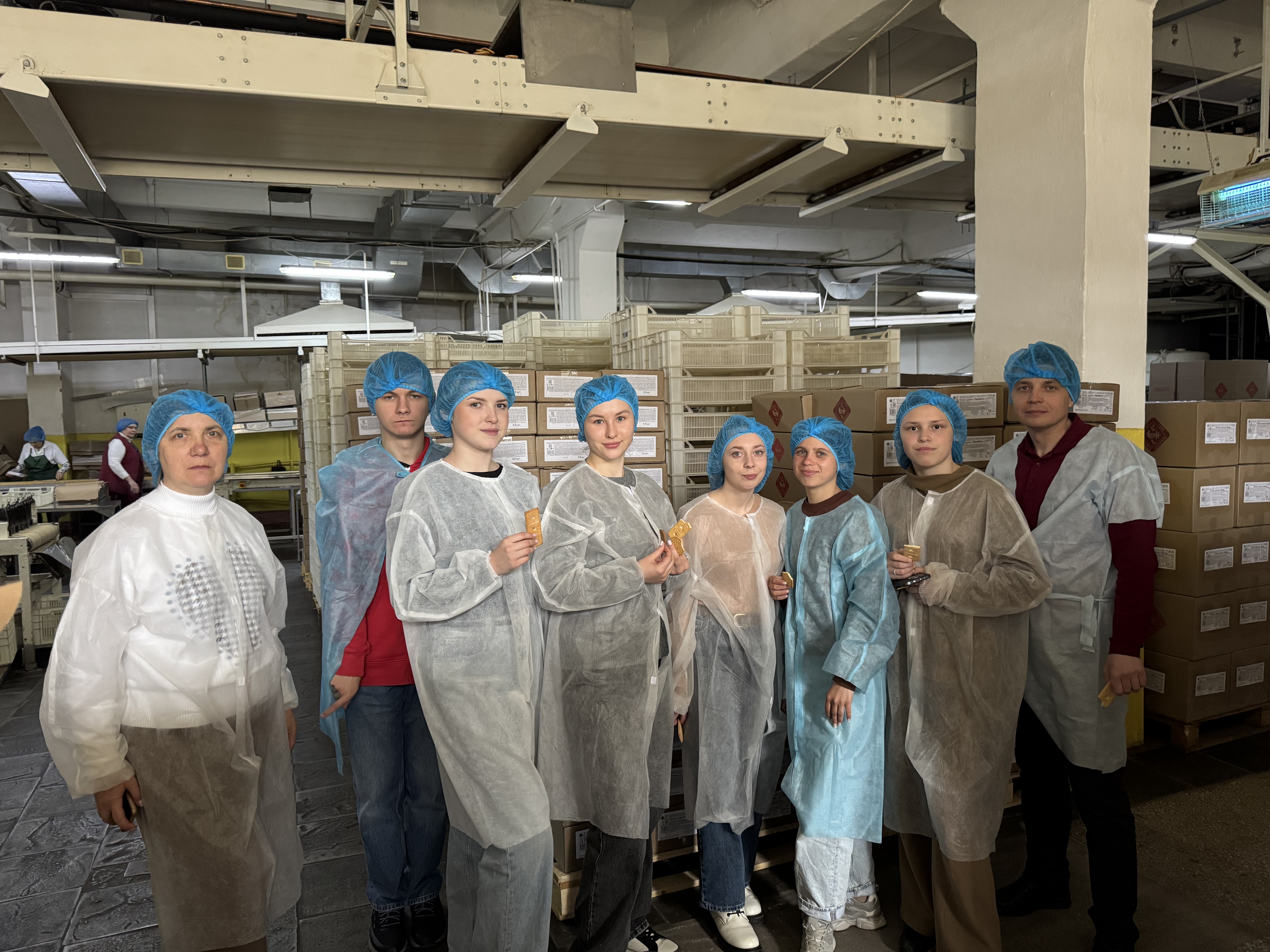 Під час екскурсії майбутні технологи отримали неймовірну можливість у режимі реального часу вивчити роботу автоматизованих ліній, спостерігаючи за автоматизованими процесами виробництва печива та цукерок у різних цехах підприємства, ознайомитися з організацією контролю якості, що реалізується на основі впроваджених інтегрованих систем управління безпечністю харчових продуктів відповідно до міжнародних стандартів ISO 22000 та FSSC 22000, поспостерігати за роботою сучасного пакувального обладнання, дізнатися про нові рецептури, зокрема лінійку дієтичних продуктів без цукру, а також поспілкуватися з різного рівня фахівцями підприємства.