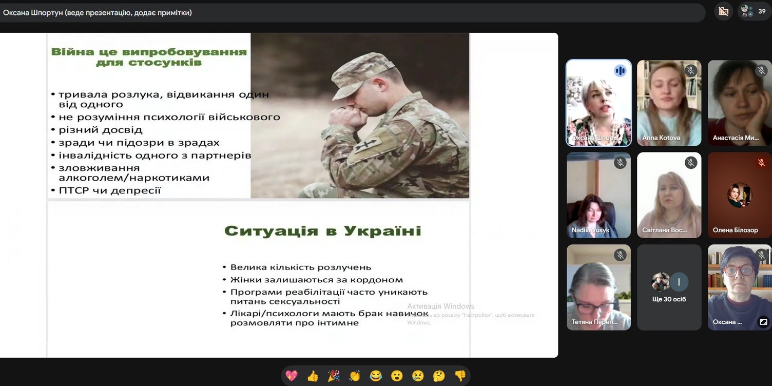 «Сексуальна реабілітація під час війни: Метод PLISSIT» Ведуча: Оксана Шпортун (КЗВО «Вінницька академія безперервної освіти»). Учасники ознайомилися з алгоритмом роботи за моделлю PLISSIT, яка є міжнародним стандартом у консультуванні з питань сексуального здоров'я. Особливий акцент було зроблено на специфіку реабілітації військовослужбовців та цивільних в умовах воєнного стану. «Чарівний горщик» Ведуча: Інга Полілуєва (Глухівський НПУ ім. О. Довженка). Арт-терапевтична техніка була спрямована на глибоке усвідомлення власних емоцій. Учасники досліджували свій емоційний стан та опановували інструменти його стабілізації та покращення.