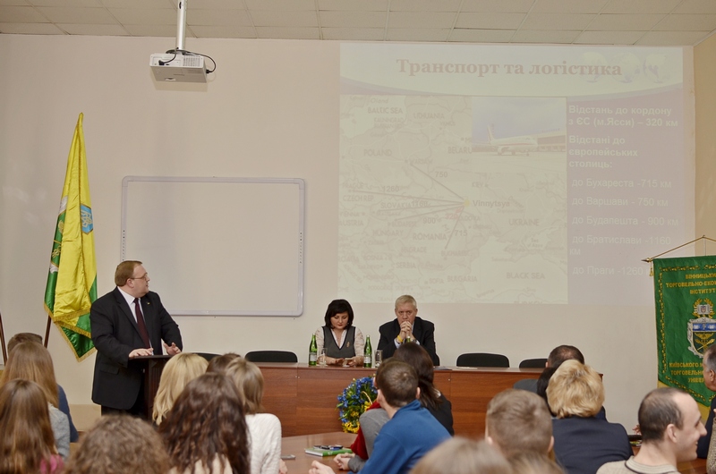 Студенти та викладачі ВТЕІ КНТЕУ сьогодні мали змогу поспілкуватись із начальником Управління міжнародного співробітництва Вінницької ОДА В.М.Мережком та Генеральним Консулом Республіки Польща у м. Вінниця паном Томашом Олейнічаком. Пан Генеральний Консул поінформував про сучасний старн українсько-польських відносин та заявив про всебічну та стійку підтримку України з боку польського народу, а Володимир Мережко презентував Вінницьку область як ефективного гравця на міжнародній арені. Найбільше учасників дискусії цікавили питання безвізового режиму та можливості і напрямки працевлаштування молоді.