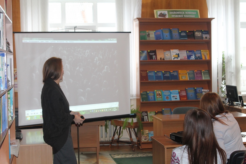 17 лютого 2016 року об 15:00 год. здобувачі вищої освіти навчальних груп КПР-11, ФПР-11 ВТЕІ КНТЕУ прийняли участь у заході, який відбувся у секторі правової інформації ВОУНБ ім. К.А. Тімірязева та був присвячений Дню початку тимчасової окупації Криму. В рамках цього заходу голова Вінницької обласної громадської організації «Подільський центр соціальних технологій» Оксана Степанівна Яцюк прочитала лекцію на тему: «Порушення прав людини в окупованому Криму».
