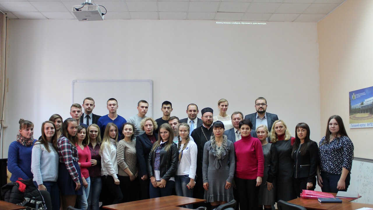 06 жовтня 2016 року кафедрою права факультету економіки, менеджменту та права ВТЕІ КНТЕУ в аудиторії № 17 корпусу №1 було проведено міжвузівський круглий стіл на тему: «Вплив деструктивних релігійних рухів на формування правосвідомості молоді». З привітальним словом до учасників міжвузівського круглого столу виступила декан факультету економіки, менеджменту та права ВТЕІ КНТЕУ к.пед.н., доцент Сікорська Л.О. Під час даного заходу з цікавими та актуальними доповідями виступили наступні учасники: начальник управління у справах національностей та релігій Вінницької обласної державної адміністрації Салецький І.О., директор Агенства TRIBUNE Communications (м. Київ), юрист, пошукач кафедри політології Національного педагогічного університету імені М.П. Драгоманова Годний С.П., протеірей Святотроїцького скального храму Волков О, заступник декана факультету економіки, менеджменту та права, к.ю.н., доцент кафедри права ВТЕІ КНТЕУ Білоус І.М. та завідувач відділення № 8 ВПНЛ імені академіка О.І. Ющенка, дитячий психіатр Литвиненко Ю.П.