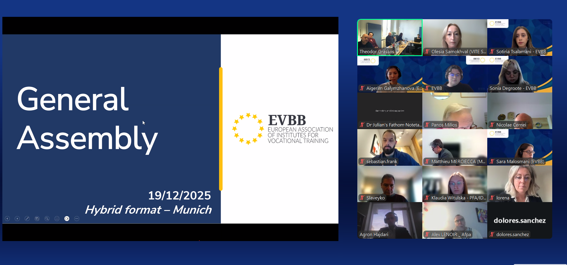 19 грудня 2025 року представництво Вінницького торговельно-економічного інституту ДТЕУ (ВТЕІ ДТЕУ) долучилося до Генеральної асамблеї Європейської асоціації закладів професійної освіти (EVBB), яка відбулася у гібридному форматі — у місті Мюнхен (Німеччина) та онлайн.