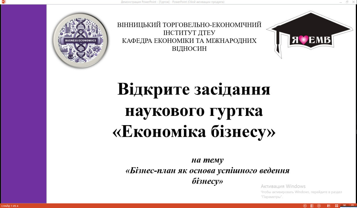 20 березня 2024 року відбулося відкрите засідання наукового гуртка «Економіка бізнесу» на тему «Бізнес-план як основа успішного ведення бізнесу». Члени гуртка обговорили перспективи відкриття власної справи в Україні та основні форми створення бізнесу. В інтерактивному форматі розглянули приклади швидкоокупних франшиз для створення бізнесу в Україні, а також обговорили обсяги стартового капіталу відомих світових брендів.