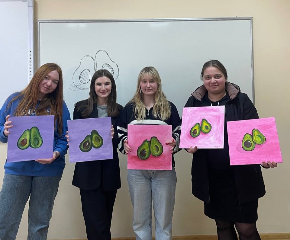 13 березня 2024 року в рамках Тижня обліково-фінансового факультету ВТЕІ ДТЕУ було проведено майстер-клас «Avokadova арт-терапія». Талановиті здобувачки вищої освіти спеціальності 071 «Фінанси, банківська справа, страхування та фондовий ринок» Дарія Сухора та Вікторія Сулімовська організували майстерню з малювання акриловими фарбами на полотні.