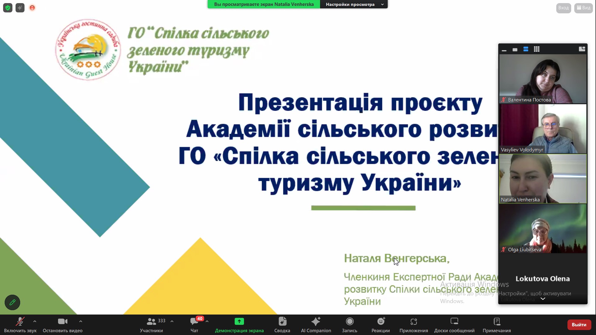 30 січня 2024 року науково-педагогічні працівники кафедри туризму та готельно-ресторанної справи долучилися до участі у презентації Академії сільського розвитку ГО «Спілка сприяння розвитку сільського зеленого туризму України», що відбувалася на онлайн-платформі Zoom. Організаторами була ГО «Спілка сільського зеленого туризму України».