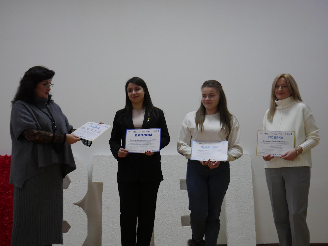 За результатами заключного засідання Конкурсної комісії Всеукраїнського конкурсу наукових робіт здобувачів вищої освіти та молодих учених «Бізнес і права людини в Україні: проблеми та рішення під час війни та повоєнного відновлення» з оцінювання 115-ти наукових робіт, допущених до участі в Конкурсі ухвалено рішення про нагородження Відзнакою «За успішну наукову роботу» студентку ОП «Економіка бізнесу» Проценко Марину.