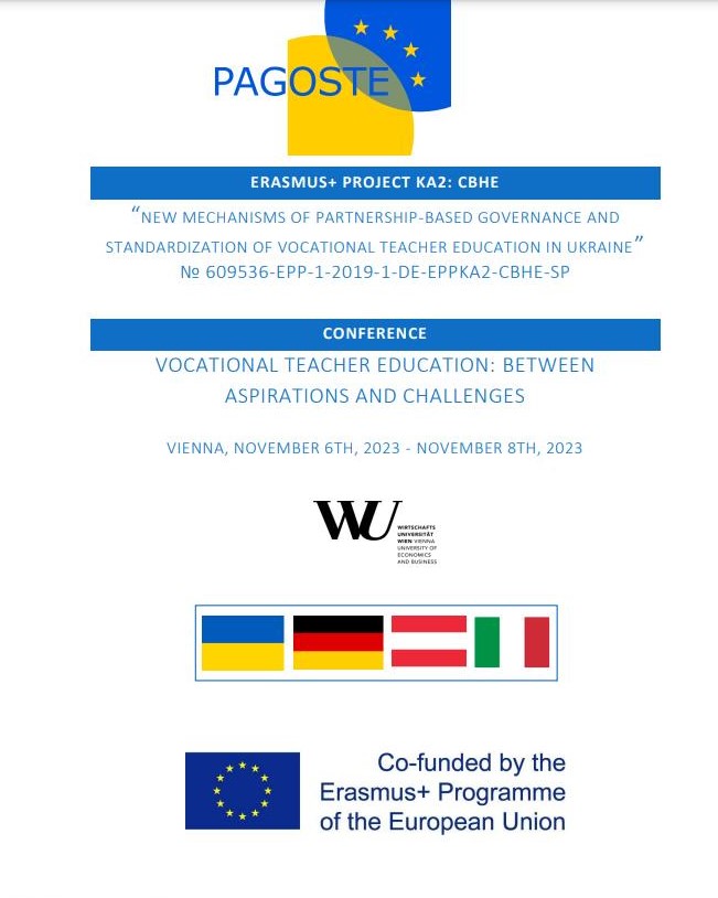 6-8 листопада 2023 року д-р філософії, доцент кафедри туризму та готельно-ресторанної справи Катерина Антонюк брала участь у Першій міжнародній конференції в рамках проєкту Erasmus+ PAGOSTE «Vocational Teacher Education: Between Aspirations and Challenges».