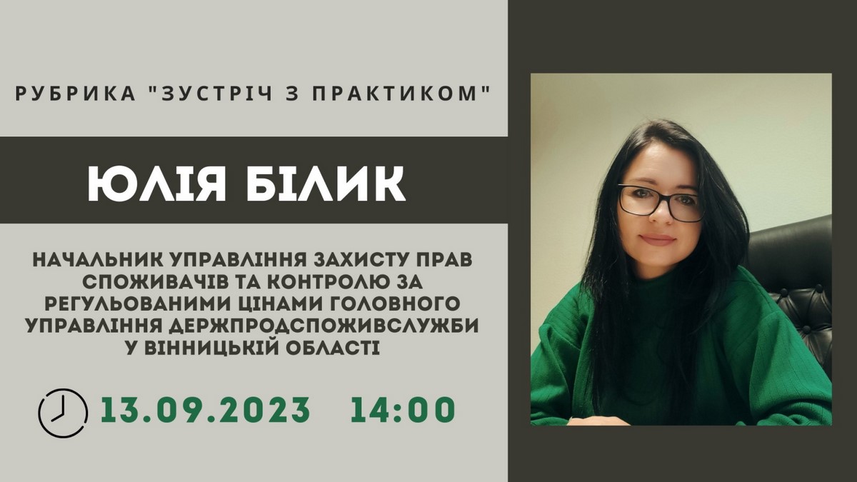 13 вересня 2023 року для здобувачів вищої освіти спеціальності 075 «Маркетинг» (ОП «Маркетинг» ОС «Магістр» та ОП «Маркетинг» ОС «бакалавр») відбулася зустріч з Юлією Білик, начальником управління захисту споживачів та контролю за регульованими цінами Головного управління Держпродспоживслужби у Вінницькій області.