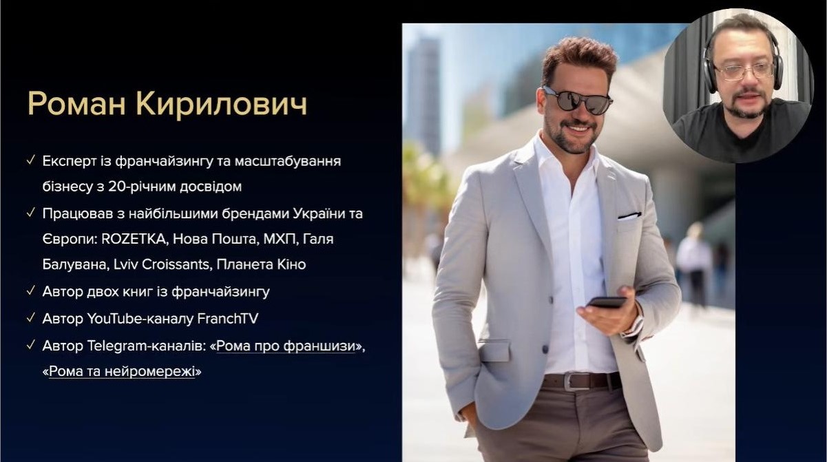 24 жовтня 2023 року здобувачі вищої освіти та науково-педагогічні працівники брали участь у вебінарі «Як підкорити соцмережі з AI», який проведено за участю Романа Кириловича, співзасновника компанії «Franch.AI», експерта з AI, франчайзингу та масштабування бізнесу з 20-річним досвідом.