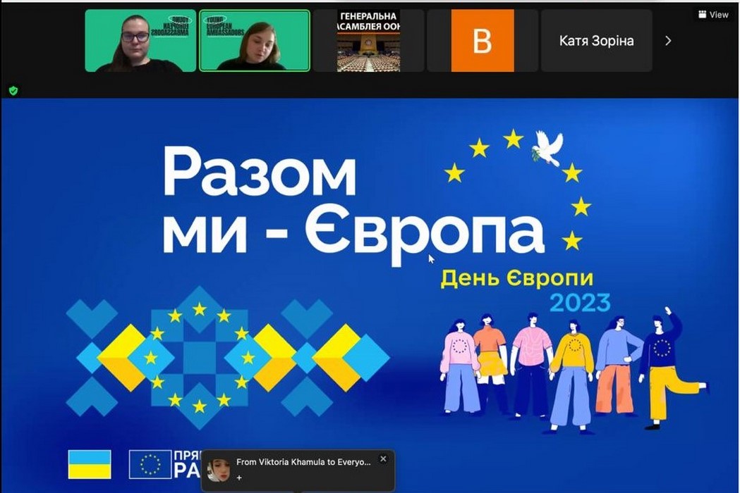 24 травня 2023 року в рамках відзначення Дня Європи, за підтримки Представництва ЄС в Україні та реалізації кампанії "Разом ми - Європа" посолка європейської молоді, студентка ОС «магістр», спеціальності 292 «Міжнародні економічні відносини», Жовтобрюх Богдана провела захід в форматі онлайн для здобувачів ОС «магістр» освітніх програм «Міжнародний бізнес» та «Економіка підприємства» «Управління в системі соціального забезпечення», ОС «бакалавр» освітніх програм «Економіка бізнесу», «Міжнародний бізнес», «Соціальне забезпечення». В рамках заходу відбулася цікава дискусія щодо співпраці ЄС з Україною та можливостей, які ЄС створює для молоді. Фінальним етапом зустрічі був приємний розіграш подарунків від ЄС за результатами інтерактивної гри щодо особливостей проведення Дня Європи в Україні. Вітаємо здобувачів Дениса Лучина, Богдану Вітову та Ігоря Нікітіна з перемогою та бажаємо подальших здобутків!