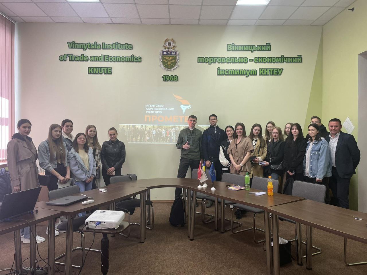 1 травня 2023 року для здобувачів вищої освіти спеціальності 075 «Маркетинг» (ОП «Маркетинг» ОС «магістр» та ОП «Маркетинг» ОС «бакалавр») проведено зустріч у змішаному форматі, запрошеним спікером виступив засновник Агенства нерухомості «Прометей» із темою: «Стратегія розвитку підприємства в період війни», де розглянуто побудову стратегії розвитку компанії на прикладі ринку нерухомості України, обговорено майбутні виклики, визначено ризики та шляхи їх подолання.