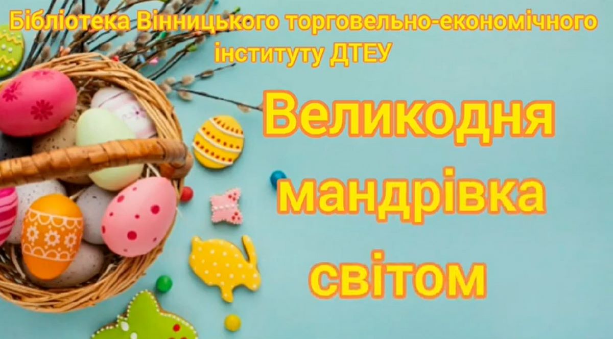 Для всіх християн, незалежно від обряду, Великдень - найсвітліше та найбільше свято, традиції святкування якого формувалися століттями. Великдень відзначається у багатьох куточках світу, але кожна країна має свої власні та неповторні традиції святкування. Напередодні свята бібліотека ВТЕІ ДТЕУ підготувала віртуальний калейдоскоп «Великодня мандрівка світом», в якому представлені незвичайні традиції святкування Великодня у різних країнах світу. Запрошуємо до перегляду https://youtu.be/_wWSOP4NMkI.