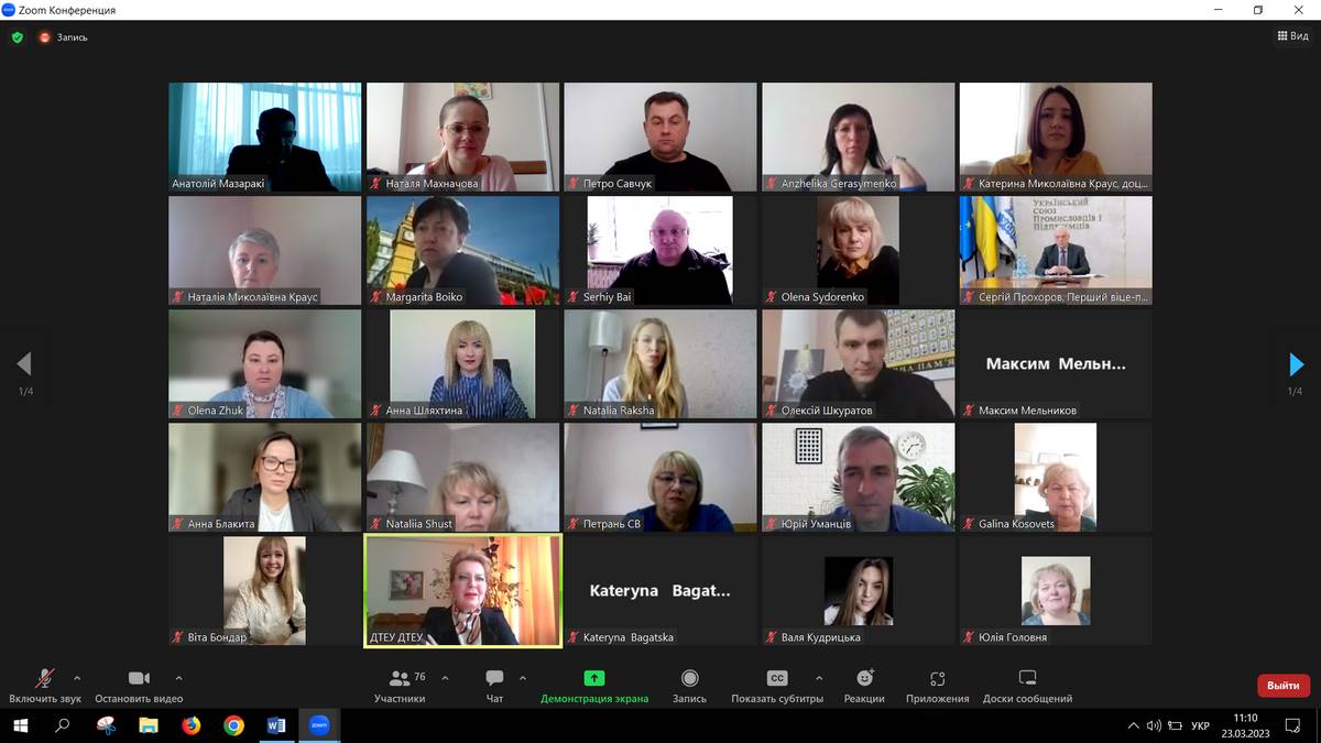 23 березня 2023 року у Державному торговельно-економічному університеті відбувся XIV Міжнародний бізнес-форум «Проблеми та перспективи розвитку інноваційної діяльності в Україні: виклики воєнного стану» у формі zoom-відеоконференції. Метою бізнес-форуму було обговорення актуальних проблем та напрацювання напрямків розвитку інноваційних процесів в Україні в умовах викликів воєнного стану. Участь у форумі взяли представники центральних органів виконавчої влади, бізнесу, наукових та освітніх організацій. До роботи форуму долучилися науково-педагогічні працівники кафедри менеджменту та адміністрування і кафедри економіки та міжнародних відносин.