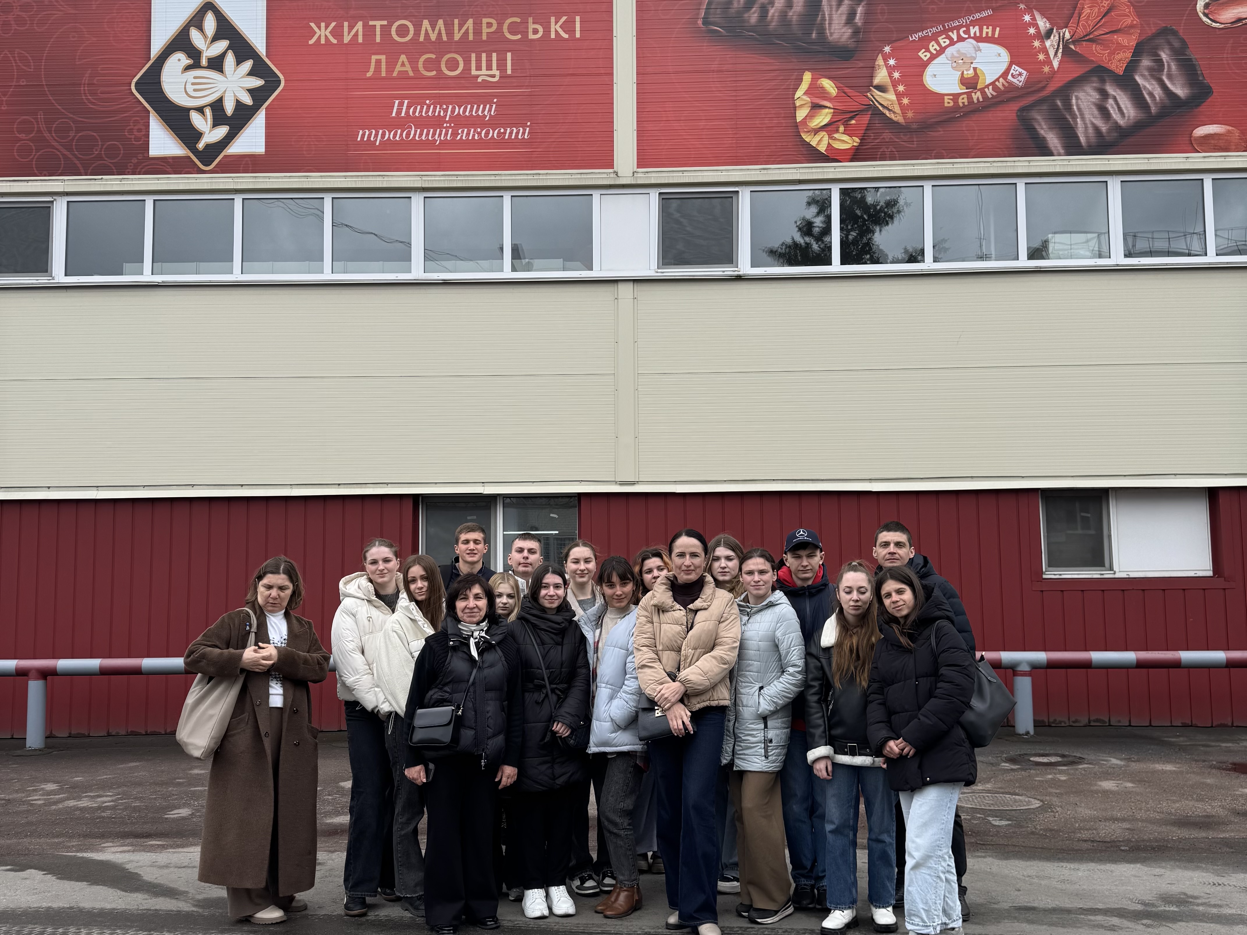 08 квітня 2026 року здобувачі вищої освіти за спеціальністю G13 / 181 «Харчові технології» на чолі з завідувачем кафедри туризму та готельно-ресторанної справи Наталією Чорною, доцентами Тетяною Семко та Олександрою Божком відвідали кондитерську фабрику «Житомирські ласощі» у м. Житомирі – одного з лідерів кондитерського ринку України.