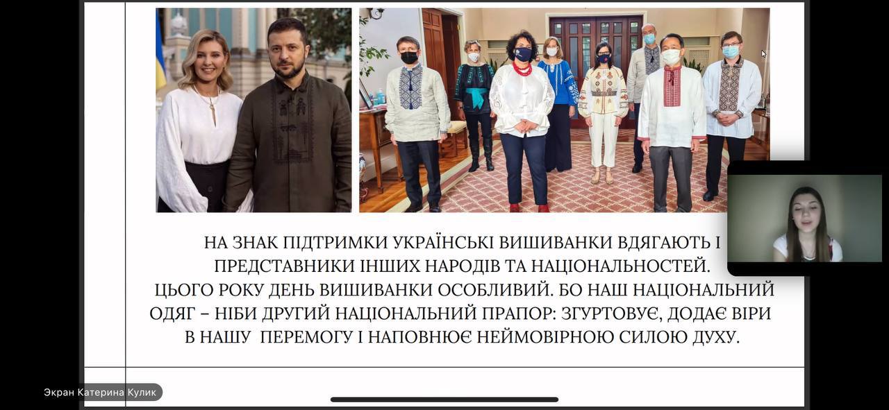 Серед актуальних доповідей було заслухано доповідь Катерини Кулик, студентки групи ПУА-21д на тему «Українська вишиванка – справжній генетичний код нації», науковий керівник - канд. екон. наук, доцент Наталя Махначова.