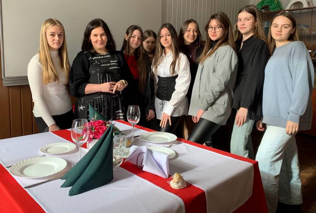 З нагоди Дня всіх закоханих, 14 лютого 2023 року для учнів 9-Б та 10-А класу КЗ «Вінницький ліцей №10» асистент кафедри туризму та готельно-ресторанної справи Олена Пахомська провела майстер-клас «Святкове тематичне сервірування столу та техніки складання столових серветок». Мета заходу - розвиток естетичного смаку, моторики рук, рухової та емоційної пам'яті, формування знань про столовий посуд, приладдя, столову білизну, вміння підбирати їх у процесі сервірування тематичного святкового столу.