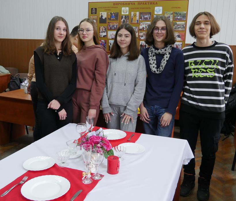 13 лютого 2023 року учні 10-В класу КЗ «Вінницький ліцей № 4 ім. Д. І. Менделєєва» завітали до ВТЕІ ДТЕУ на захід в рамках вивчення курсу «Соціальне шкільне підприємництво». Для учнів асистент кафедри туризму та готельно-ресторанної справи Олена Пахомська провела майстер-клас «Святкове тематичне сервірування столу та техніки складання столових серветок». Мета заходу - розвиток естетичного смаку, моторики рук, рухової та емоційної пам'яті, формування знань про столовий посуд, приладдя, столову білизну, вміння підбирати їх у процесі сервірування тематичного святкового столу.