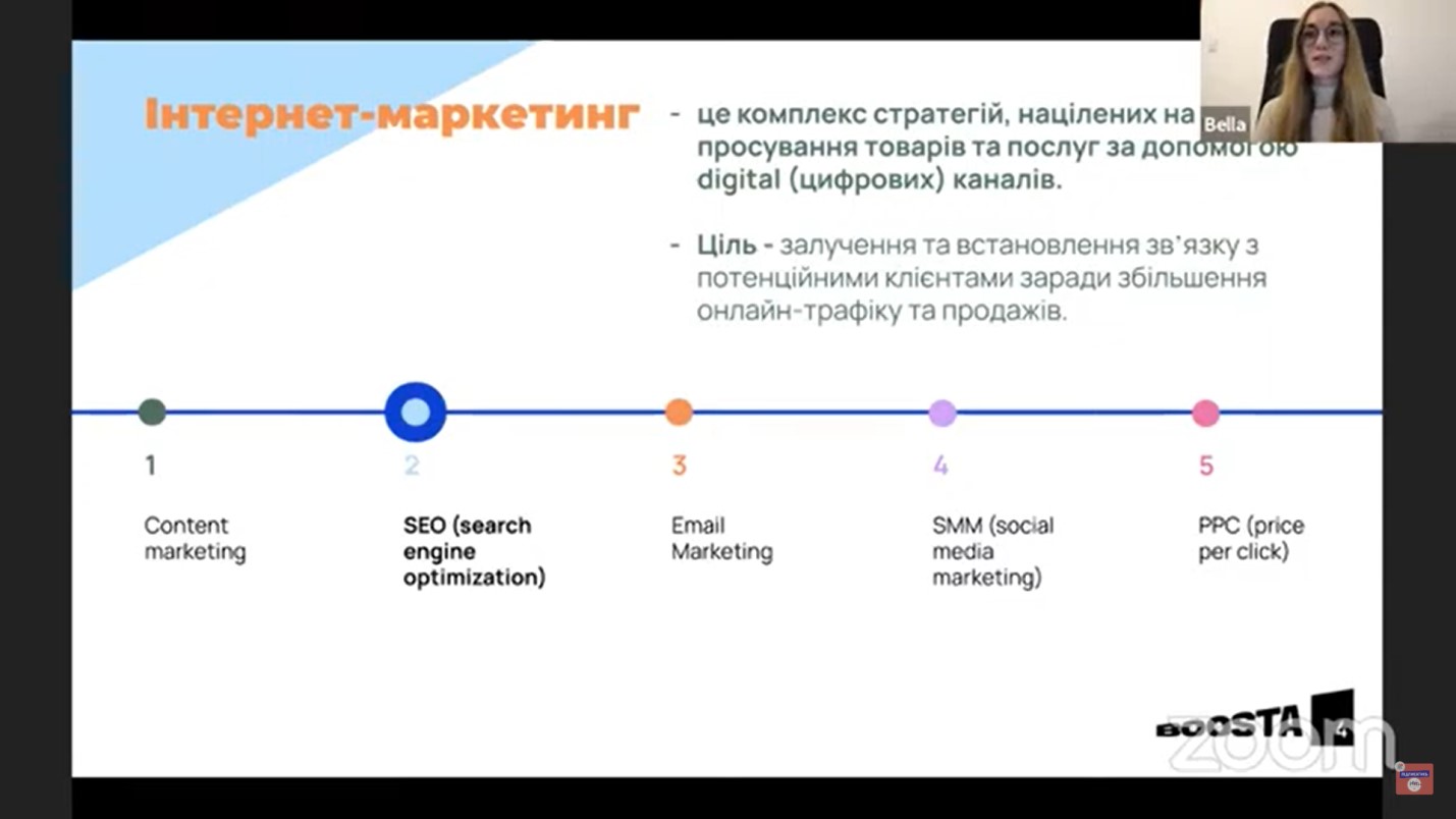 Маркетологи ВТЕІ ДТЕУ доєдналися до лекції Белли Ткач продакт-менеджерки, Team Lead в компанії Boosta, яку організували Happy Monday (ГО «Професіонали майбутнього») за підтримки проєкту ООН Жінки в Україні «Трансформаційні підходи для досягнення ґендерної рівності в Україні», що фінансується Урядом Швеції, та у співпраці з Офісом Віцепрем’єр-міністерки з питань європейської та євроатлантичної інтеграції в межах проєкту «Women For The Future».