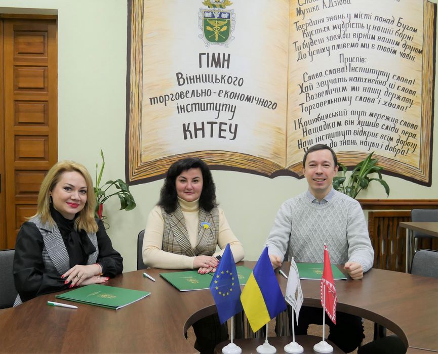 30 листопада 2022 року було підписано договори про співпрацю Вінницького торговельно-економічного інституту ДТЕУ (в особі директора Наталії Замкової) з Департаментом маркетингу міста та туризму Вінницької міської ради (в особі директора Олександра Вешелені) та КП Вінницької міської ради «Офіс туризму Вінниці» (в особі директора Тетяни Маєвської).
