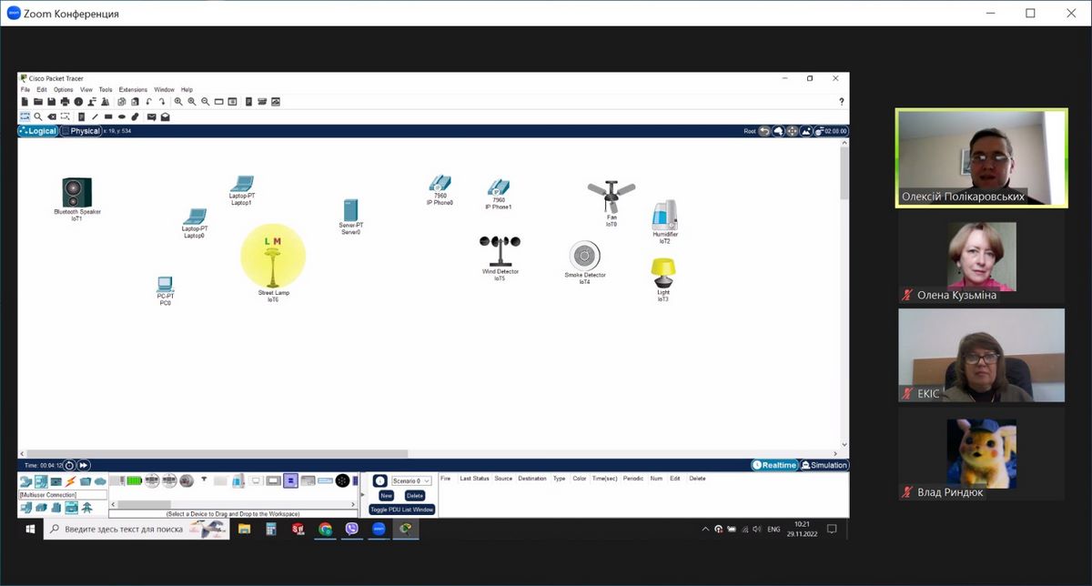 29 листопада 2022 року кафедра економічної кібернетики та інформаційних систем провела майстер – клас на тему «Основи моделювання комп'ютерних мереж в середовищі Cisco Packet Tracer», який відбувався під керівництвом Олексія Полікаровських, д.т.н., професора Одеського національного морського університету кафедри технічної кібернетики й інформаційних технологій ім. професора Р. В. Меркта. На майстер-класі були присутні 39 здобувачів вищої освіти спеціальності «Інформаційні системи та технології» та викладачі кафедри економічної кібернетики та інформаційних систем, у т.ч. зав.кафедри Гусак Л.П., професор Романюк В.В., доценти Кузьміна О.М. та Яремко С.А.