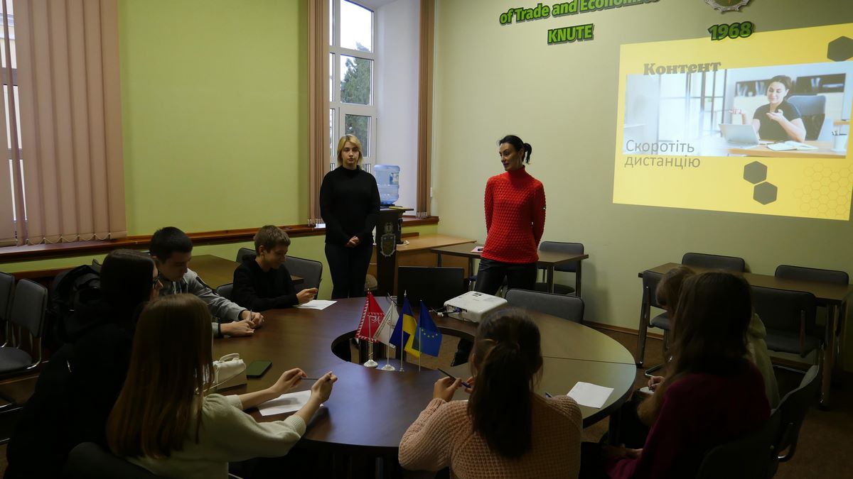 28 листопада 2022 року для школярів 10-В класу КЗ «Вінницький ліцей 4 ім. Д.І. Менделєєва» в рамках вивчення курсу «Соціальне шкільне підприємництво», старший викладач кафедри іноземної філології та перекладу Уляна Шостак і асистент кафедри іноземної філології та перекладу Юлія Ясенчук провели заняття «Комунікації в соціальних мережах». Мета заходу - узагальнення знань учнів про вимоги до мовлення та мовних норм у соціальних мережах.