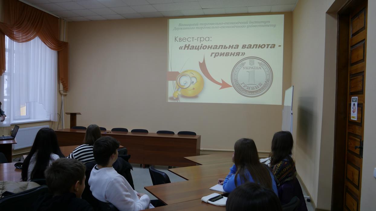 21 листопада 2022 року для школярів 10-В класу КЗ «Вінницький ліцей 4 ім. Д.І. Менделєєва» в рамках вивчення курсу «Соціальне шкільне підприємництво», доцент кафедри обліку та оподаткування Олена Кудирко і доцент кафедри обліку та оподаткування Ірина Лобачева провели квест-гру «Національна валюта - гривня».