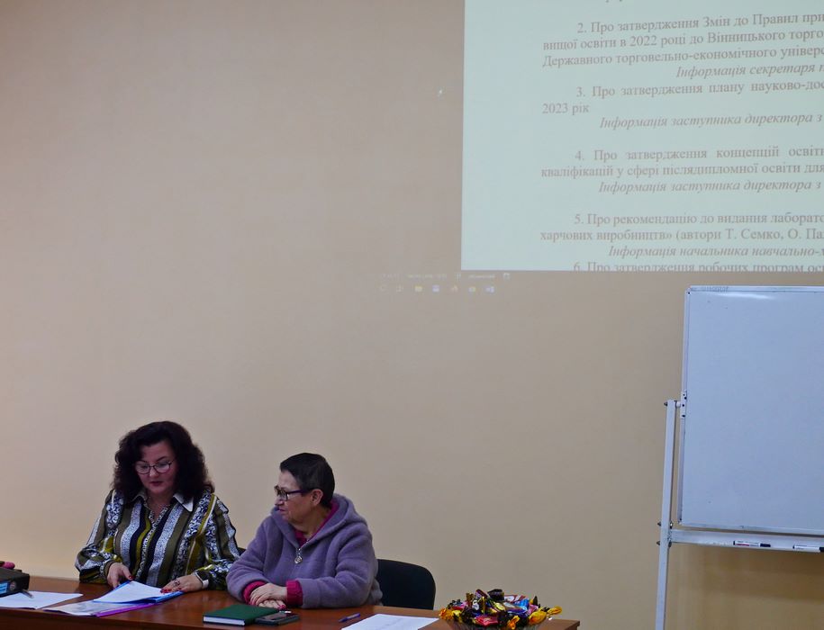 31 жовтня 2022 року відбулося засідання вченої ради ВТЕІ ДТЕУ, на якому були затверджені документи та ухвалені відповідні рішення згідно порядку денного.