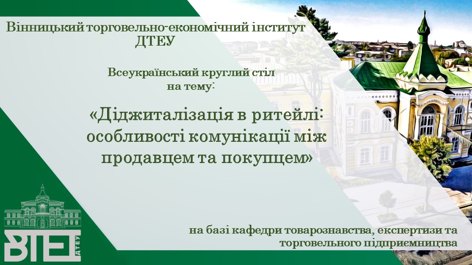 24 жовтня 2022 року в рамках тижня факультету торгівлі, маркетингу та сфери обслуговування 24 жовтня 2022 року кафедрою товарознавства, експертизи та торговельного підприємництва дистанційно онлайн на платформі Zoom було проведено Всеукраїнський круглий стіл на тему «Діджиталізація в ритейлі: особливості комунікації між продавцем та покупцем».