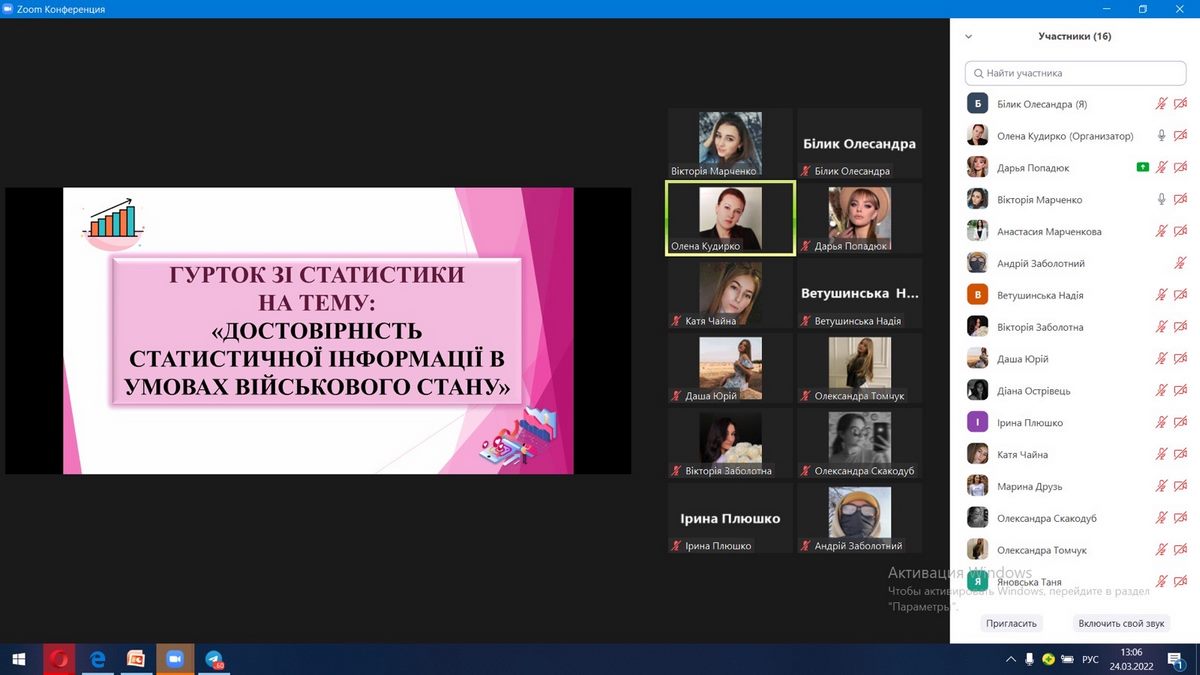 24 березня 2022 року на базі кафедри обліку та оподаткування Вінницького торговельно-економічного інституту ДТЕУ відбулося відкрите засідання наукового гуртка з дисципліни «Статистика» на тему: «Достовірність статистичної інформації в умовах військового стану». На заході було представлено 19 доповідей здобувачів вищої освіти груп ОО-11д, М-11д, М-11мб, Е-21д та ФБСС-21д денної форми навчання.