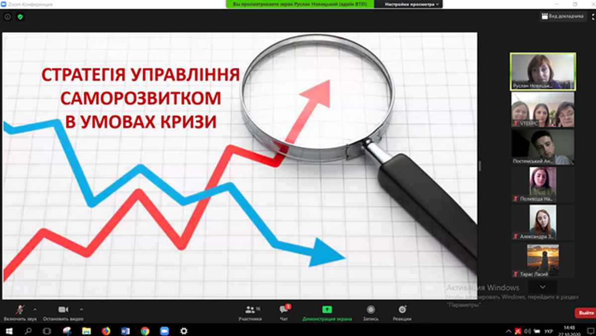 27 жовтня 2020 року здобувачі освітнього ступеня «бакалавр» спеціальностей «Менеджмент» та «Публічне управління та адміністрування» 3-4 курсів та науково-педагогічні працівники кафедри менеджменту та адміністрування, брали участь в онлайн хакатоні «Актуальні тренди сучасного менеджменту». Метою заходу було розробка чек листу для формування стратегії розвитку особистості в умовах кризи. В ході заходу було обговорено Skills 2030, плюси та мінуси он-лайн освіти, нові виклики працевлаштування молоді, вплив зовнішнього середовища/суспільства на розвиток особистості в умовах «корона-кризи», work-life balance.