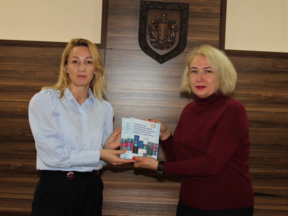 Леся Сергіївна зазначила, як правильно призначати експертизи, які є підробки документів, як їх виявляти та оглядати, все це можна дізнатися із вказаного навчального посібника, а також він буде корисний при вивченні дисципліни «Криміналістика», а також автор подарувала декілька екземплярів на кафедру права та у бібліотеку ВТЕІ КНТЕУ.