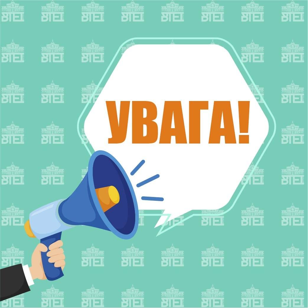 У зв’язку зі встановленням у м. Вінниці «помаранчевого» рівня епідемічної небезпеки поширення COVID-19, з 05.10.2020 навчальний процес у ВТЕІ КНТЕУ для здобувачів вищої освіти всіх освітніх ступенів та курсів очної (денної, вечірньої) та заочної форм навчання відбуватиметься за змішаною формою навчання (в аудиторіях та дистанційно) в групах до 20 осіб з дотриманням всіх протиепідемічних заходів.