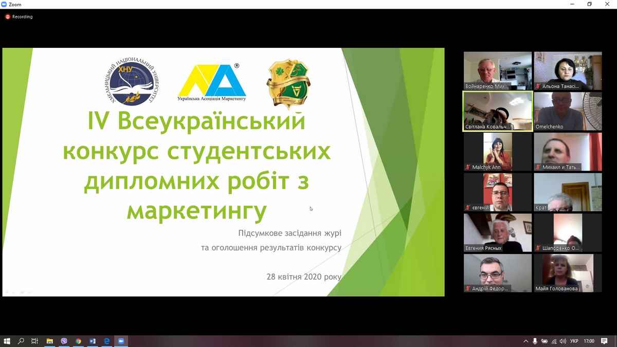 28 квітня 2020 року на базі Хмельницького національного університету відбулося підсумкове засідання журі IV Всеукраїнського конкурсу студентських дипломних робіт зі спеціальності «Маркетинг».