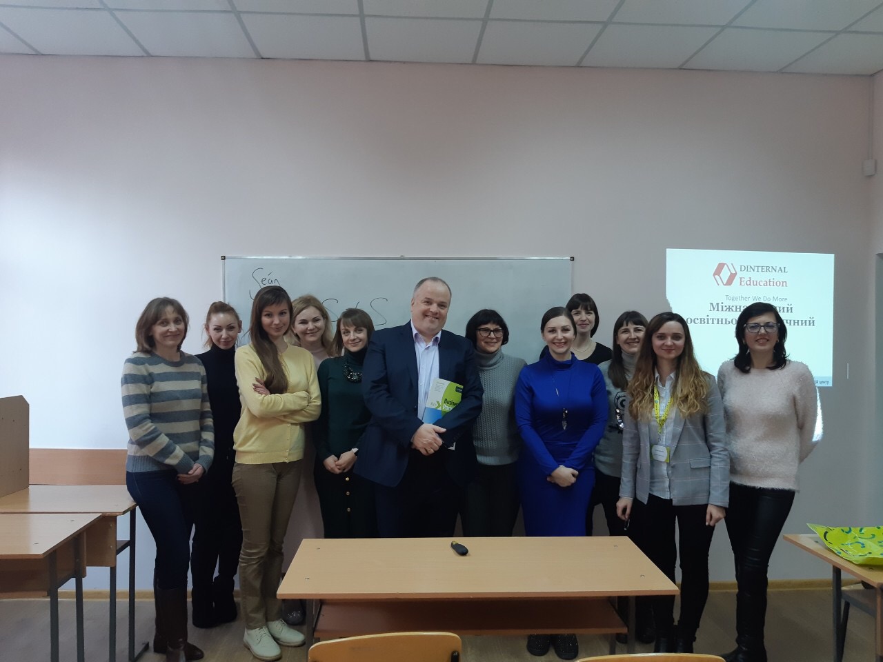 7 лютого 2019 року викладачі кафедри іноземної філології та перекладу мали унікальну можливість поспілкуватися із Шоном Харті, генеральним директором «Дінтернал-Ед’юкейшн» (Dinternal-Education), яка є ексклюзивним партнером компанії «Пірсон» (Pearson). Учасники тренінгу ознайомилися із інноваційними тенденціями в організації іншомовної освіти, заснованими на поєднанні аудиторної та автономної роботи студентів із залученням сертифікованих он-лайн ресурсів. На зустрічі також була присутня Анна Бруско, координатор проектів «Дінтернал-Ед’юкейшн» із вишами України. Вона ознайомила викладачів із сучасними можливостями цифрових рішень у розробленні навчальних курсів на базі англомовної MEL платформи, зорієнтованих на розвиток мовних і академічних навичок. Учасники тренінгу висловили сподівання на подальше партнерство на шляху до впровадження інноваційних технологій в іншомовну освіту.