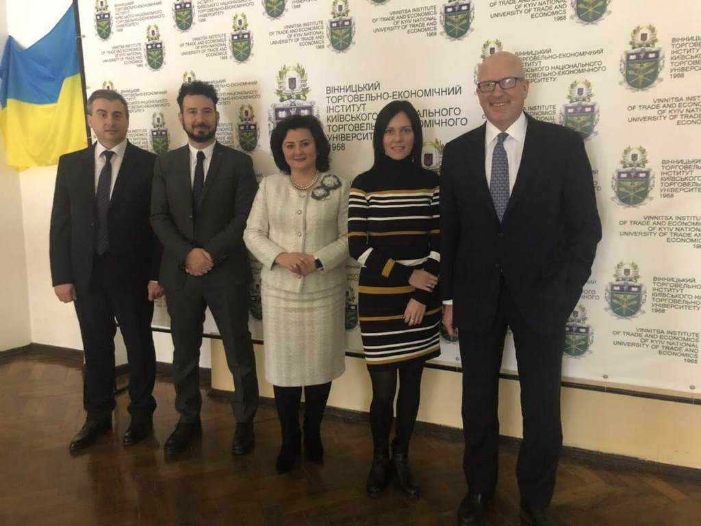 Вінницький торговельно-економічний інститут КНТЕУ 21 грудня 2018 року з офіційним візитом відвідала делегація ПАТ «КРЕДІ АГРІКОЛЬ БАНК» у складі: Джорджіо Сопранзі, члена правління-CFO, Жан-П’єра Паллара, члена правління-операційного директора, Чорнобаєва Андрія Миколайовича, директора Центру супроводу та підтримки. ПАТ «КРЕДІ АГРІКОЛЬ БАНК» впродовж більш ніж 5 років є надійним та стабільним партнером нашого навчального закладу. Це сучасний універсальний банк та найстарший іноземний банк в Україні, який належить до однієї з найбільших фінансових груп світу Credit Agricole (Франція). Банк працює на фінансовому ринку України з 1993 року та пропонує повний спектр банківських послуг корпоративним клієнтам та фізичним особам, включаючи преміум-клієнтів.