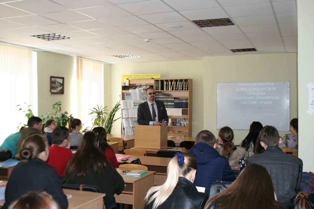 11 квітня 2017 року кафедрою фінансів було організовано лекцію-тренінг на тему: «Світові фондові ринки і можливість заробляти на них в Україні», яку провели представники Центру біржових технологій. На заході були присутні заступник декана обліково-фінансово факультету Копняк К.В., викладачі кафедри фінансів та здобувачі вищої освіти спеціальності «Фінанси і кредит». Лекція-тренінг відбувалася в незвичайному форматі: кожен присутній отримав змогу стати учасником реального ринку цінних паперів в он-лайн режимі. Здобувачі вищої освіти із захопленням спостерігали та аналізували динаміку зміни вартості акцій найпотужніших американських корпорацій (BMW, Siemens, Apple, Boeing, Google). Учасникам тренінгу було відкрито унікальні «секрети» прибуткової торгівлі на ринку цінних паперів та особливості використання sfd-контрактів. Представники Центру визначили емітентів-лідерів за розміром дивідендів (у 2017 році – це компанія Siemens (3,6 євро на акцію)) та розповіли, яким чином економічні та фінансові новини впливають на зміну вартості акцій компаній.