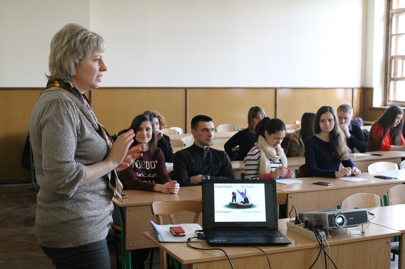 18 лютого 2016 р. для здобувачів освітнього ступеня «бакалавр» групи ТОЗТ-41д було проведено психологічний тренінг-семінар на тему: «Успіх та міфи про успіх». Захід провела представник громадської організації «Гармонія сердець» Калетнік Оксана Василівна, використовуючи інтерактивні форми роботи.
