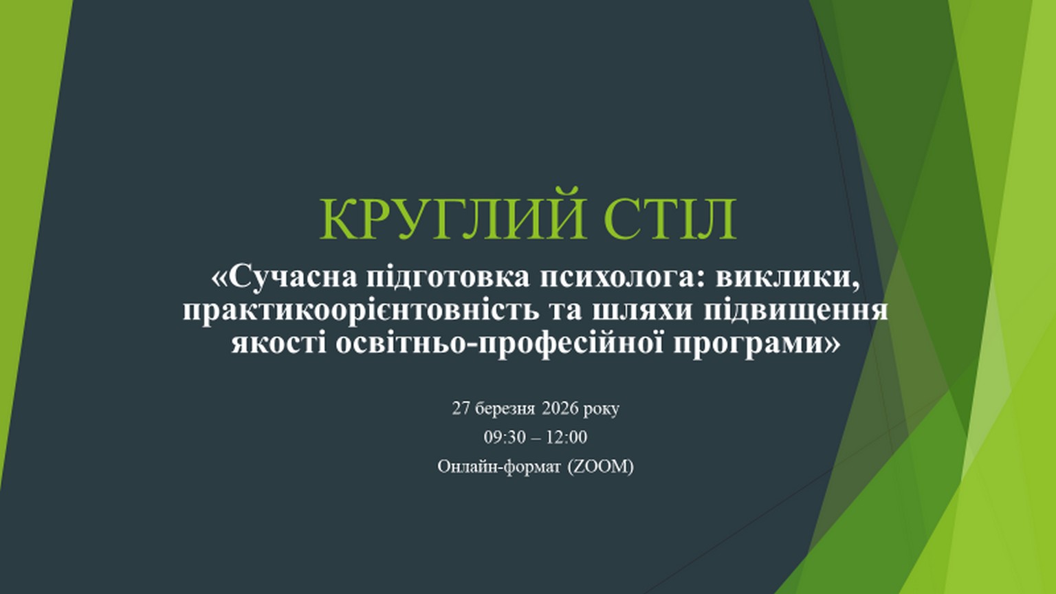 27 березня 2026 року в рамках співпраці з Маріупольським державним університетом науково-педагогічні працівники кафедри психології ВТЕІ ДТЕУ взяли участь у круглому столі на тему «Сучасна підготовка психолога: виклики, практикоорієнтованість та шляхи підвищення якості освітньо-професійної програми», який став майданчиком для професійного діалогу щодо актуальних тенденцій підготовки майбутніх фахівців у галузі психології.