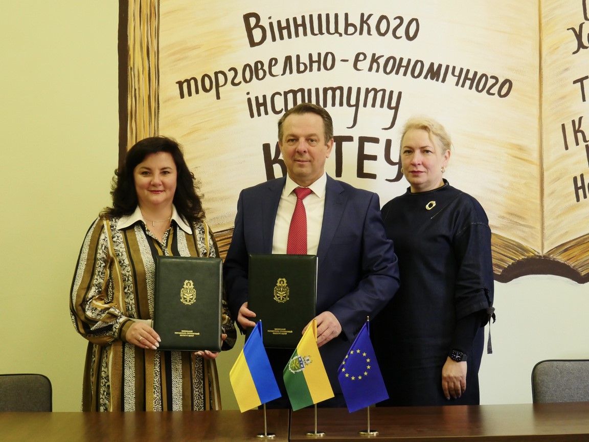 19 березня 2025 року відбулось підписання договору про співпрацю між Вінницьким торговельно-економічним інститутом ДТЕУ та Вінницькою обласною організацією Громадської організації «Союз юристів України». Договір передбачає співпрацю в напрямку навчальної, навчально-методичної, науково-дослідної, виховної роботи та взаємного обміну досвідом з метою поліпшення якості підготовки фахівців, закріплення теоретичних знань та їх практичного застосування. Враховуючи взаємну зацікавленість, сторони домовились про взаємодію та співробітництво в напрямку формування спільноти кваліфікованих правників (юристів), спроможних на високому професійному рівні реалізовувати отримані знання, про проведення сумісних заходів, підготовку інформаційно-аналітичних та методичних матеріалів.