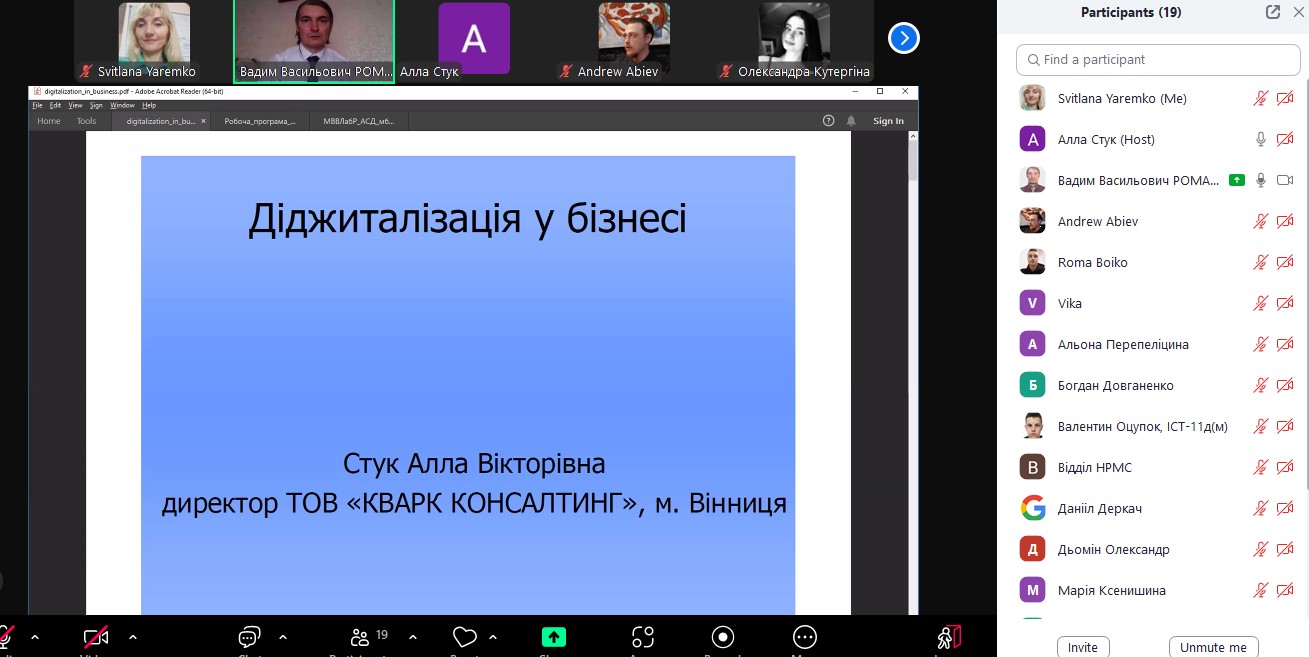 07 березня 2025 року на базі кафедри інформаційних систем та технологій Вінницького торговельно-економічного інституту ДТЕУ було проведено круглий стіл на тему «Цифрова трансформація бізнес-процесів підприємств в умовах воєнного часу» для здобувачів вищої освіти спеціальності F6 «Інформаційні системи і технології» освітньої програми «Інформаційні технології у бізнесі».